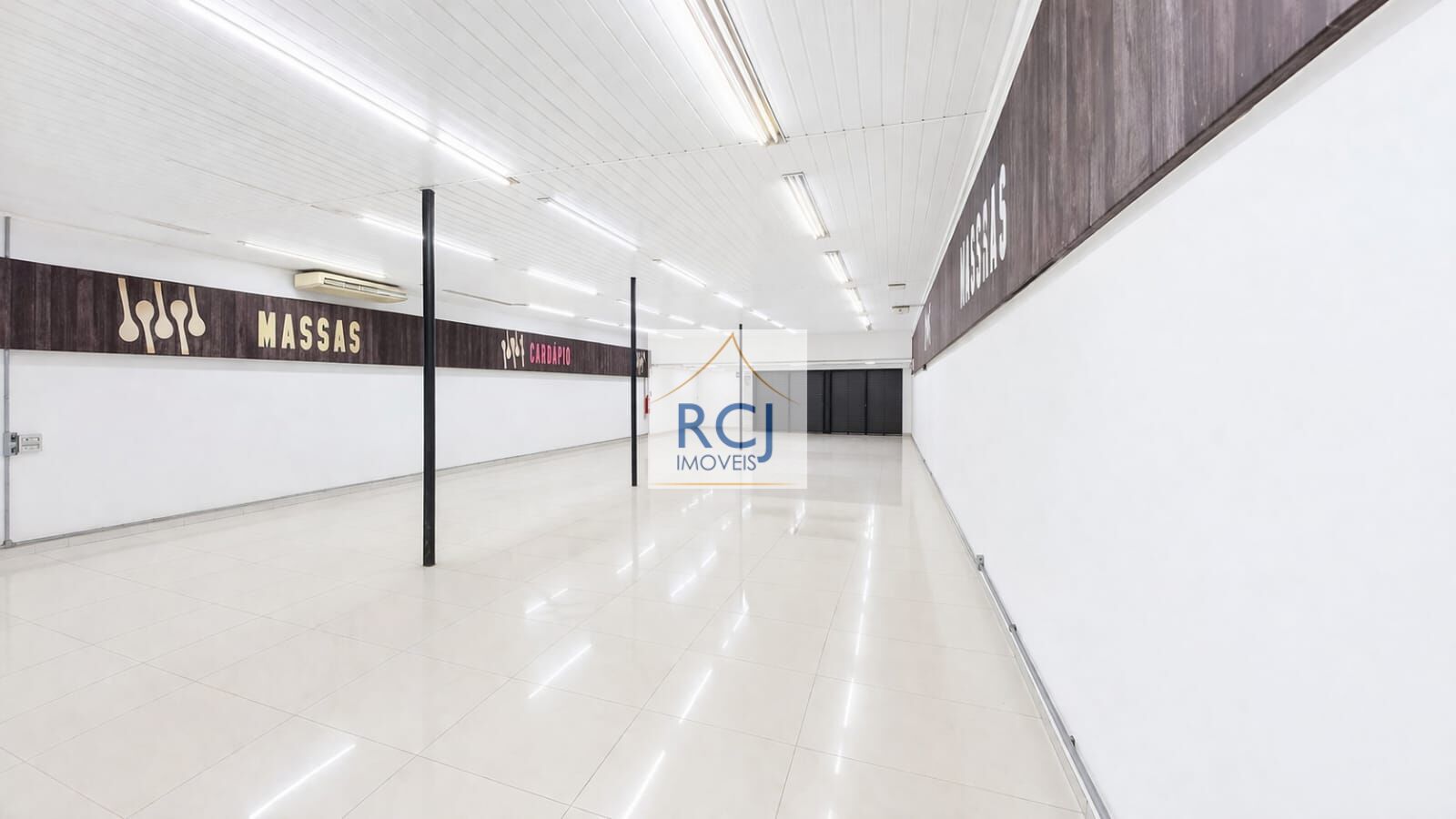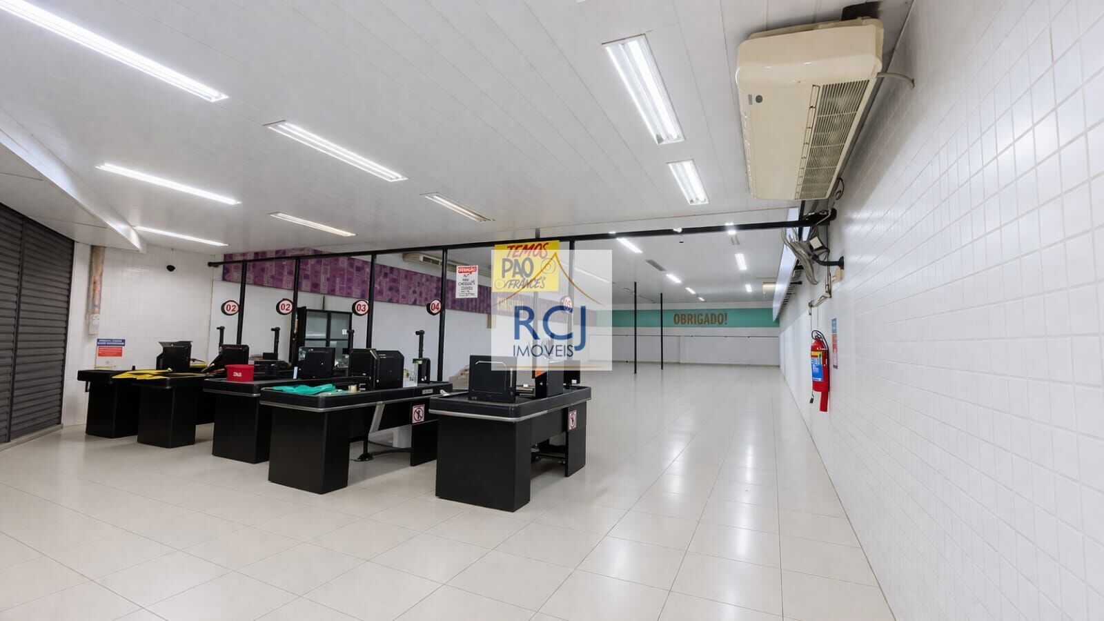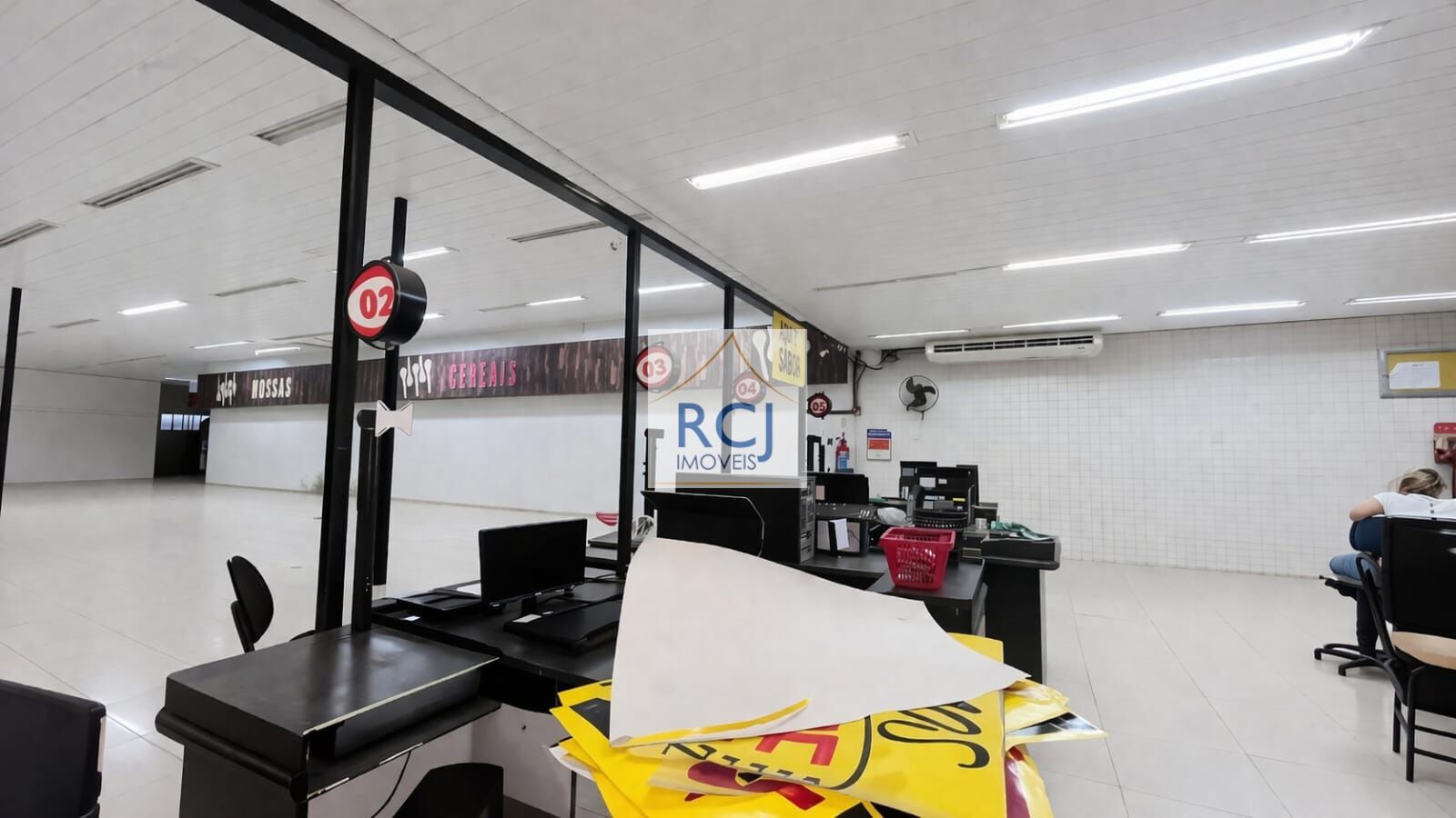 Possui área interna bem distribuída, com piso em bom estado, pé-direito alto e iluminação instalada em toda a extensão, garantindo boa visibilidade e conforto no ambiente. Conta ainda com estrutura de apoio com balcões de atendimento/caixa já posicionados, ideal para operação comercial imediata.